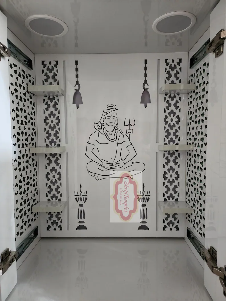 SHRIJI TEMPLES, WOODEN TEMPLES WITH DOORS FOR HOME AND OFFICE, WOODEN DOOR MANDIR FOR POOJA WITH LED LIGHT, WALL HANGING & TABLE TOP HOME MANDIR