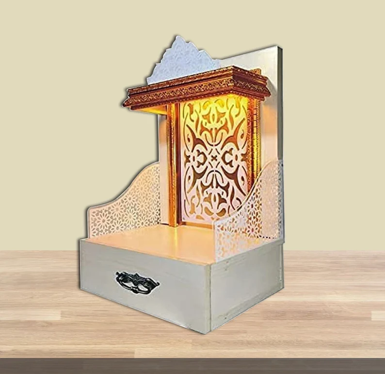 SHRIJI TEMPLES, WOODEN TEMPLES FOR HOME AND OFFICE, WOODEN MANDIR FOR POOJA WITH LED LIGHT, WALL HANGING & TABLE TOP HOME MANDIR